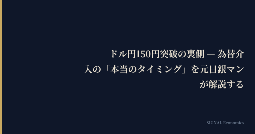 2024年以降、ドル円相場は150円台を中心とした攻防が続いている。筆者が日銀在籍時代に目撃した為替介入の実態は、市場参加者が想像するものとは大きく異なる。財務省が介入を決断する際の判断基準は、単なる水準ではなく「変動速度」である。関係者によれば、1日あたり2円以上の急激な変動が3営業日連続した場合に、初めて介入の検討テーブルに上がるという。