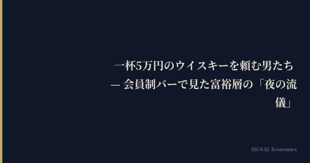 一杯5万円のウイスキーは、経済合理性だけでは説明できない。しかし、それは「無駄な消費」でもない。そこには、時間の希少性、空間の排他性、人間の技術、そしてそれらが織りなす「体験」の価値が凝縮されている。