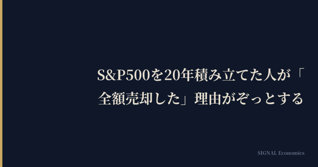 インデックス投資の成功者として知られる個人投資家・T氏(仮名)が、20年間積み立てたS&P500連動ファンドを全額売却した。含み益は約4,800万円。「まだ上がる」と周囲が止める中での決断だった。